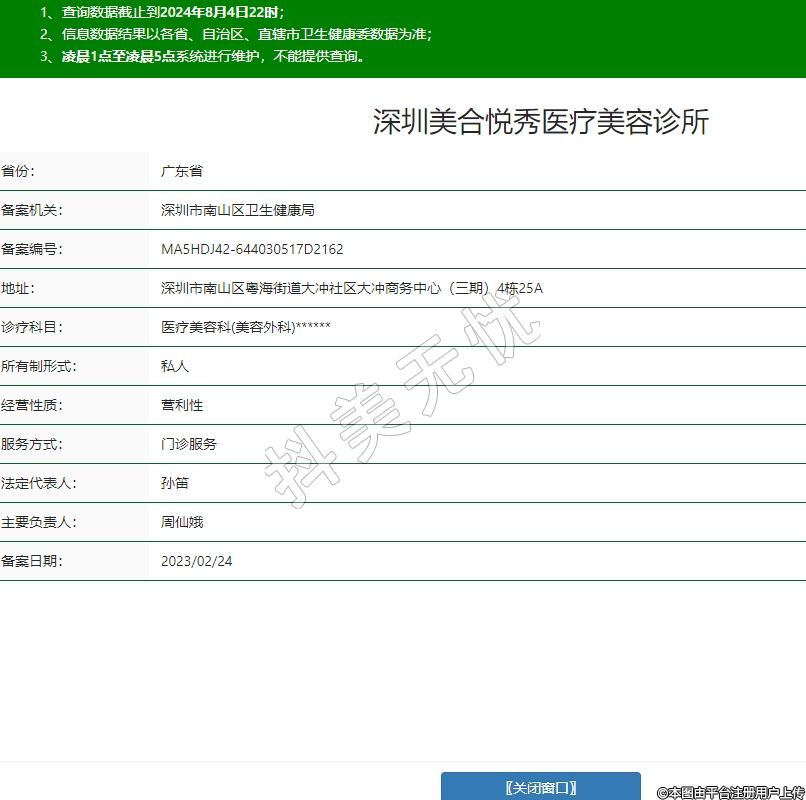 深圳美合悅秀醫(yī)療美容診所,診療科目:醫(yī)療美容科(美容外科)******