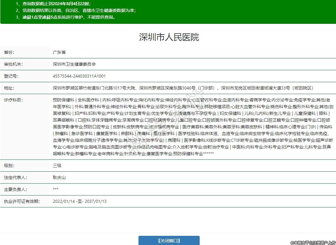 深圳市羅湖區(qū)翠竹街道東門北路1017號(hào)大院、深圳市羅湖區(qū)深南東路3046號(hào)(門診部)、深圳市龍崗區(qū)坂田街道坂瀾大道33號(hào)(坂田院區(qū))