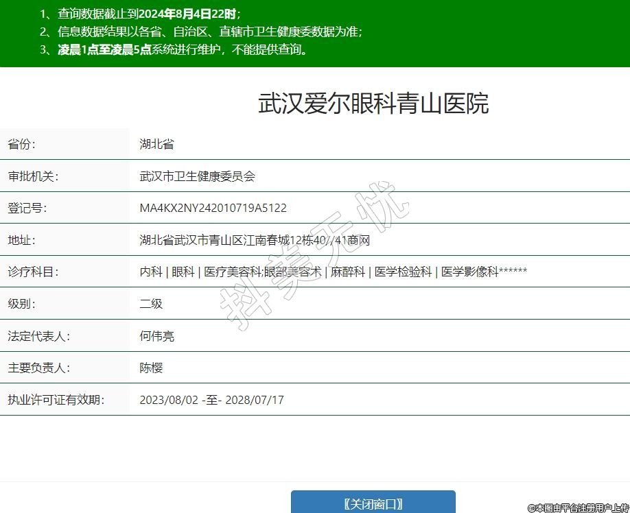 武漢愛爾眼科青山醫(yī)院,診療科目:內科 | 眼科 | 醫(yī)療美容科;眼部美容術 | 麻醉科 | 醫(yī)學檢驗科 | 醫(yī)學影像科******
