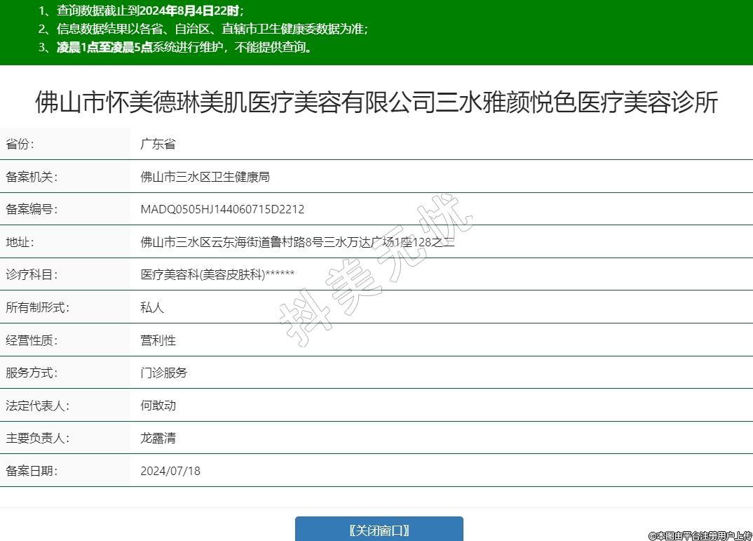 佛山市懷美德琳美肌醫(yī)療美容有限公司三水雅顏悅色醫(yī)療美容診所,診療科目:醫(yī)療美容科(美容皮膚科)******