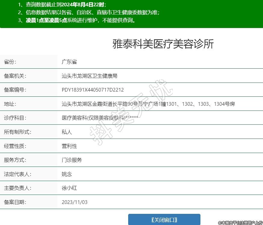 雅泰科美醫(yī)療美容診所,診療科目:醫(yī)療美容科(僅限美容皮膚科)******