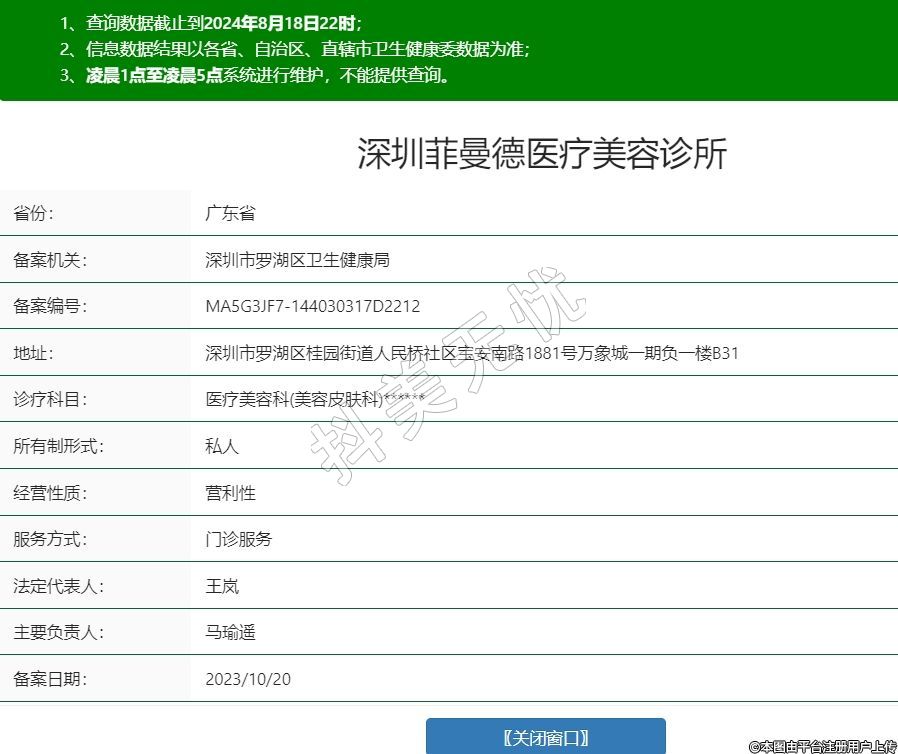 深圳菲曼德醫(yī)療美容診所,診療科目:醫(yī)療美容科(美容皮膚科)******