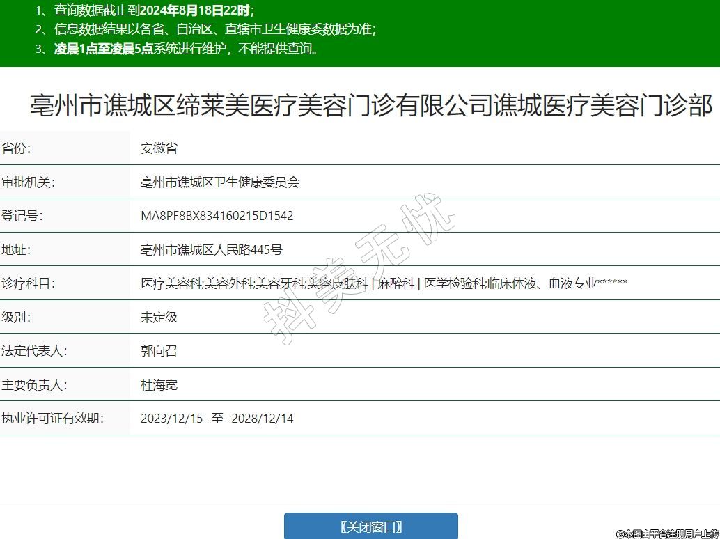 亳州市譙城區(qū)締萊美醫(yī)療美容門診有限公司譙城醫(yī)療美容門診部