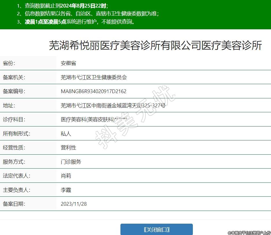 蕪湖希悅麗醫(yī)療美容診所有限公司醫(yī)療美容診所
