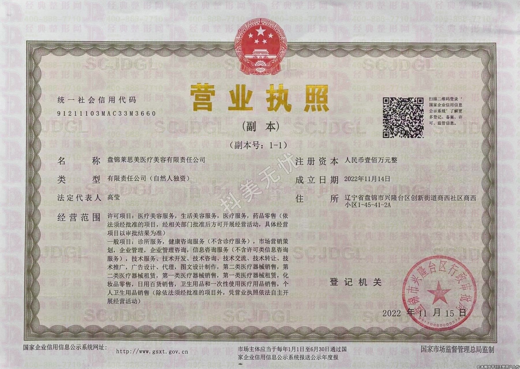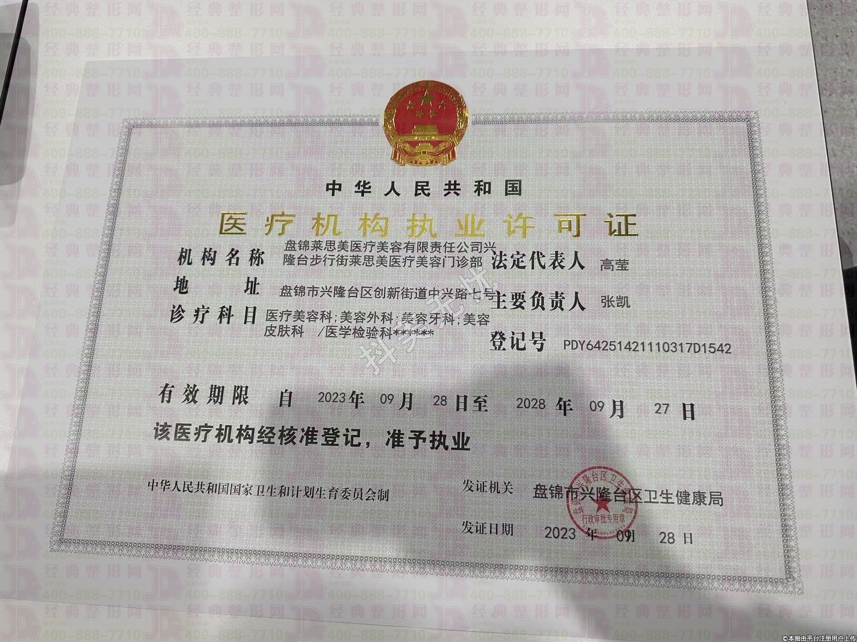 發(fā)證機關:盤錦市興隆臺區(qū)衛(wèi)生健康局