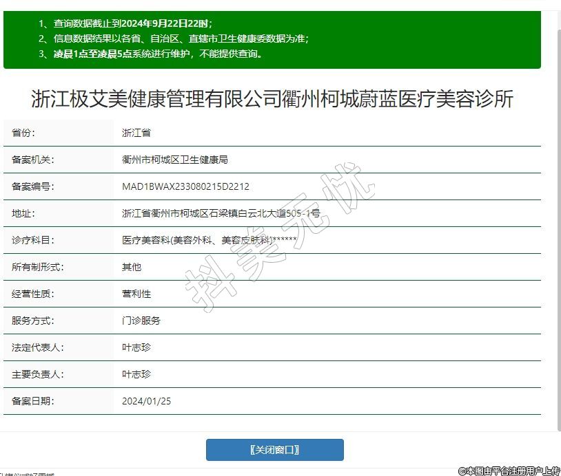 浙江極艾美健康管理有限公司衢州柯城蔚藍(lán)醫(yī)療美容診所