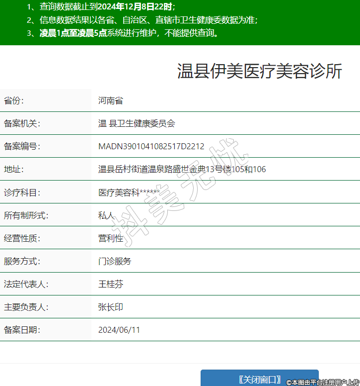溫縣伊美醫(yī)療美容,診療科目:醫(yī)療美容科******
