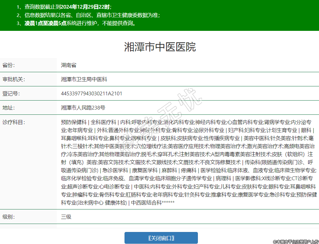預(yù)防保健科 | 全科醫(yī)療科 | 內(nèi)科;呼吸內(nèi)科專業(yè);消化內(nèi)科專業(yè);神經(jīng)內(nèi)科專業(yè);心血管內(nèi)科專業(yè);腎病學(xué)專業(yè);內(nèi)分泌專業(yè);老年病專業(yè) | 外科;普通外科專業(yè);神經(jīng)外科專業(yè);骨科專業(yè);泌尿外科專業(yè) | 婦產(chǎn)科;婦科專業(yè);計(jì)劃生育專業(yè) | 眼科 | 耳鼻咽喉科;耳科專業(yè);鼻科專業(yè);咽喉科專業(yè) | 皮膚科;皮膚病專業(yè);性傳播疾病專業(yè) | 美容中醫(yī)科;針灸美容;針刺術(shù);毫針術(shù);三棱針術(shù);其他中醫(yī)美容技術(shù);穴位埋線療法;美容醫(yī)療應(yīng)用技術(shù);物理美容治療術(shù);激光美容治療術(shù);高頻電美容治療;冷凍美容治療;其他物理美容治療;脫毛術(shù);穿耳孔術(shù);注射美容技術(shù);A型肉毒毒素美容注射技術(shù);皮膚(軟組織)注射(填充)美容;美容文飾技術(shù);文眉技術(shù);文眼線技術(shù);文唇技術(shù);不良文飾修復(fù)技術(shù) | 傳染科(限腸道傳染病門診、呼吸道傳染病門診) | 急診醫(yī)學(xué)科 | 康復(fù)醫(yī)學(xué)科 | 麻醉科 | 疼痛科 | 醫(yī)學(xué)檢驗(yàn)科;臨床體液、血液專業(yè);臨床微生物學(xué)專業(yè);臨床化學(xué)檢驗(yàn)專業(yè);臨床免疫、血清學(xué)專業(yè);臨床細(xì)胞分子遺傳學(xué)專業(yè) | 病理科 | 醫(yī)學(xué)影像科;X線診斷專業(yè);CT診斷專業(yè);超聲診斷專業(yè);心電診斷專業(yè) | 中醫(yī)科;內(nèi)科專業(yè);外科專業(yè);婦產(chǎn)科專業(yè);兒科專業(yè);皮膚科專業(yè);眼科專業(yè);耳鼻咽喉科專業(yè);腫瘤科專業(yè);骨傷科專業(yè);肛腸科專業(yè);老年病科專業(yè);針灸科專業(yè);推拿科專業(yè);康復(fù)醫(yī)學(xué)專業(yè);急診科專業(yè);預(yù)防保健科專業(yè)(治未病中心 健康體檢) | 中西醫(yī)結(jié)合科******