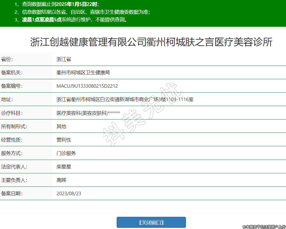 浙江創(chuàng)越健康管理有限公司衢州柯城膚之言醫(yī)療美容診所