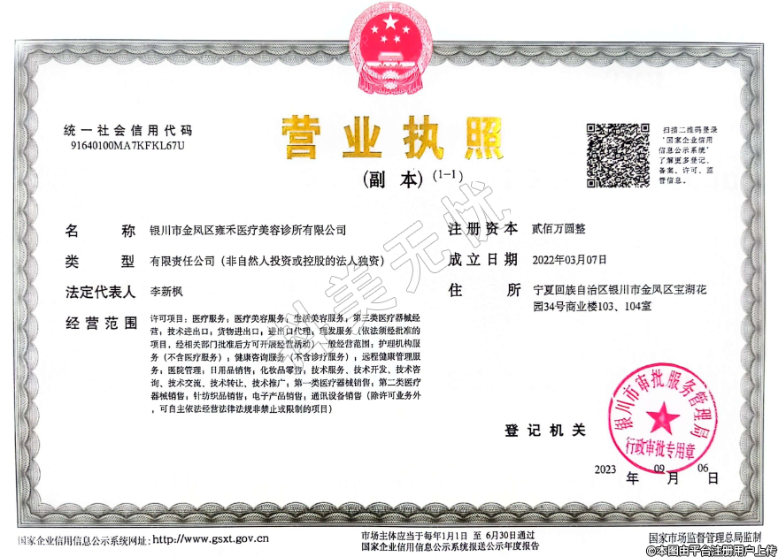 名稱:銀川市金鳳區(qū)雍禾醫(yī)療美容診所