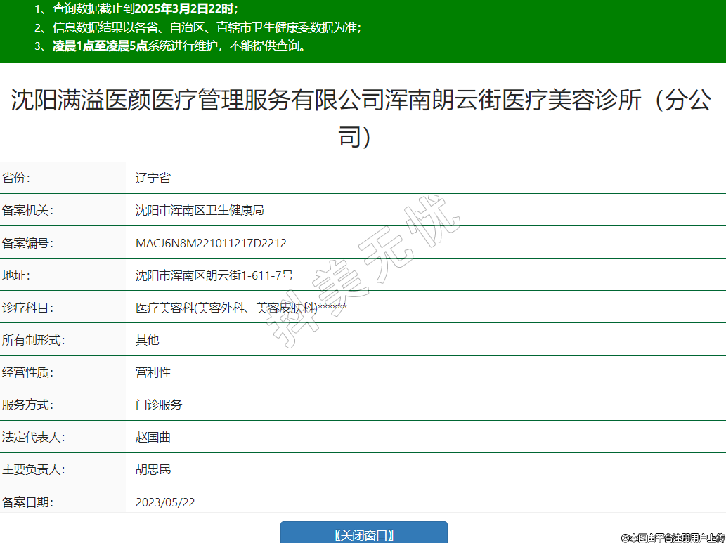 沈陽滿溢醫(yī)顏醫(yī)療管理服務(wù)有限公司渾南朗云街醫(yī)療美容診所(分公司)