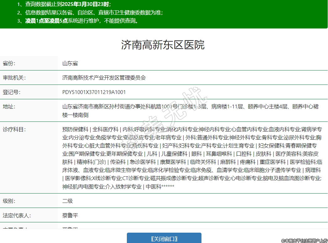 山東省濟南市高新區(qū)孫村街道辦事處科航路1001號門診樓1-3層、病房樓1-11層、頤養(yǎng)中心主樓4層、頤養(yǎng)中心裙樓一樓南側(cè)