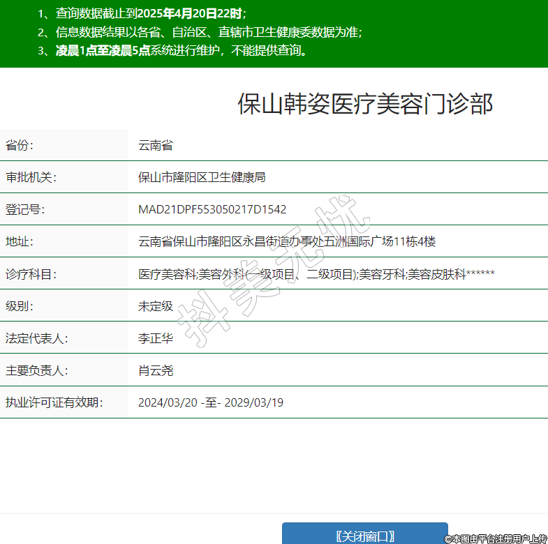 保山韓姿醫(yī)療美容門診部,診療科目:醫(yī)療美容科;美容外科(一級項目、二級項目);美容牙科;美容皮膚科******