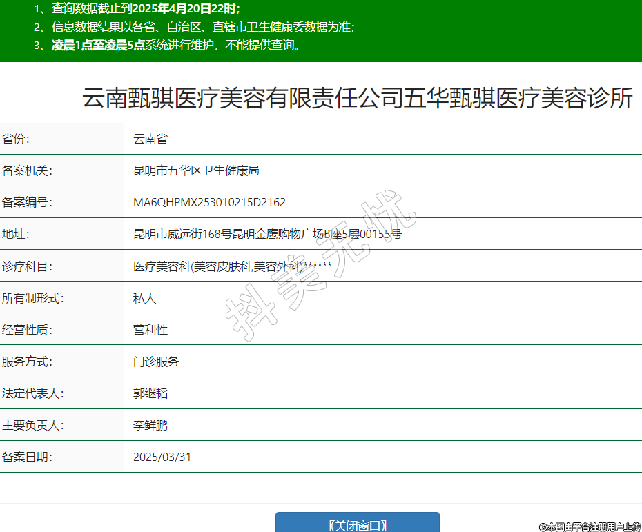 云南甄騏醫(yī)療美容有限責(zé)任公司五華甄騏醫(yī)療美容診所