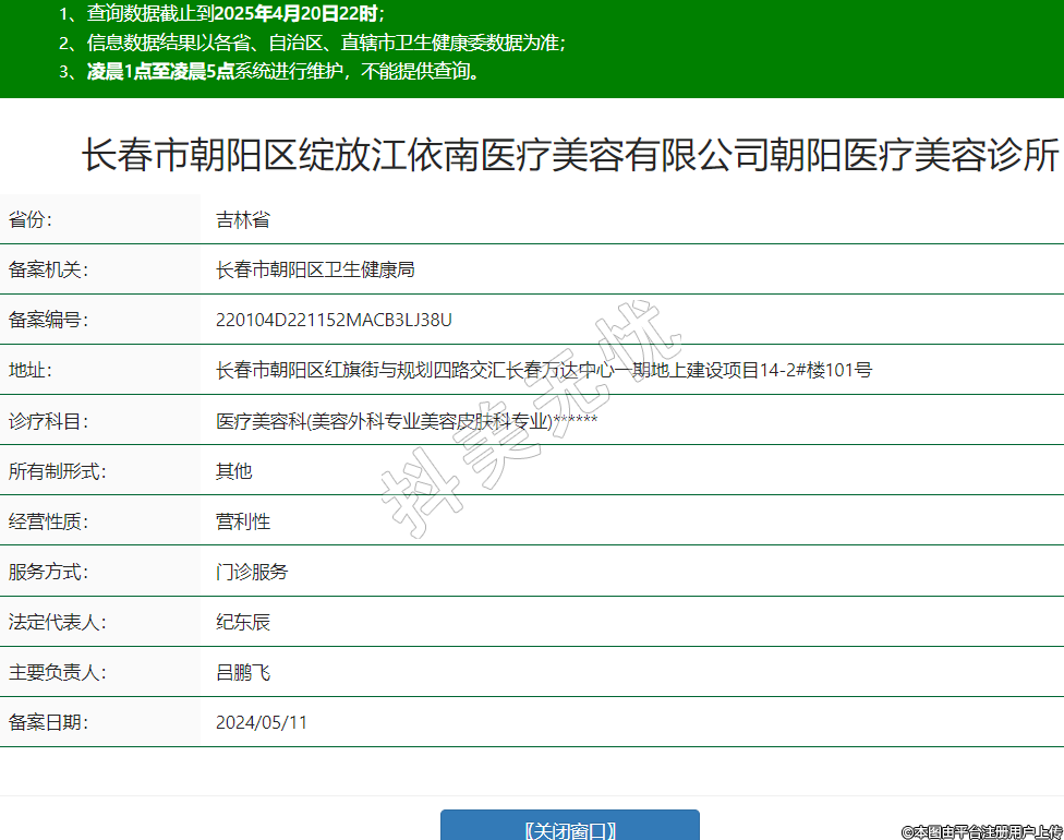 長(zhǎng)春市朝陽(yáng)區(qū)綻放江依南醫(yī)療美容有限公司朝陽(yáng)醫(yī)療美容診所