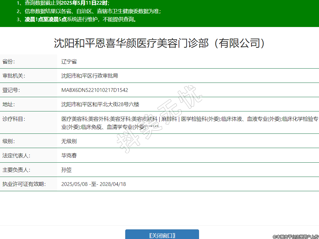 沈陽和平恩喜華顏醫(yī)療美容門診部(有限公司)