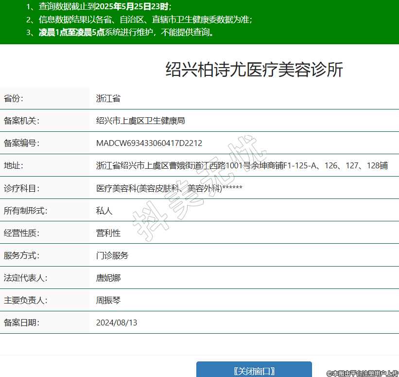 省份:浙江省備案機關(guān):紹興市上虞區(qū)衛(wèi)生健康局備案編號:MADCW693433060417D2212地址:浙江省紹興市上虞區(qū)曹娥街道江西路1001號余坤商鋪F1-125-A、126、127、128鋪診療科目:醫(yī)療美容科(美容皮膚科、美容外科)******所有制形式:私人經(jīng)營性質(zhì):營利性服務(wù)方式:門診服務(wù)法定代表人:唐妮娜主要負責(zé)人:周振琴備案日期:2024/08/13 -