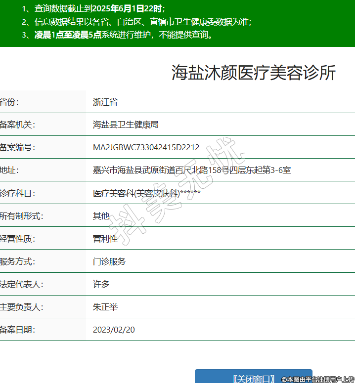省份:浙江省備案機(jī)關(guān):海鹽縣衛(wèi)生健康局備案編號(hào):MA2JGBWC733042415D2212地址:嘉興市海鹽縣武原街道百尺北路158號(hào)四層?xùn)|起第3-6室診療科目:醫(yī)療美容科(美容皮膚科)******所有制形式:其他經(jīng)營(yíng)性質(zhì):營(yíng)利性服務(wù)方式:門(mén)診服務(wù)法定代表人:許多主要負(fù)責(zé)人:朱正舉備案日期:2023/02/20 -
