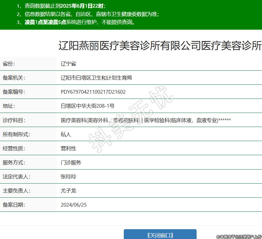 遼陽燕麗醫(yī)療美容診所有限公司醫(yī)療美容診所,診療科目:醫(yī)療美容科(美容外科,美容皮膚科) | 醫(yī)學(xué)檢驗科(臨床體液,血液專業(yè))******