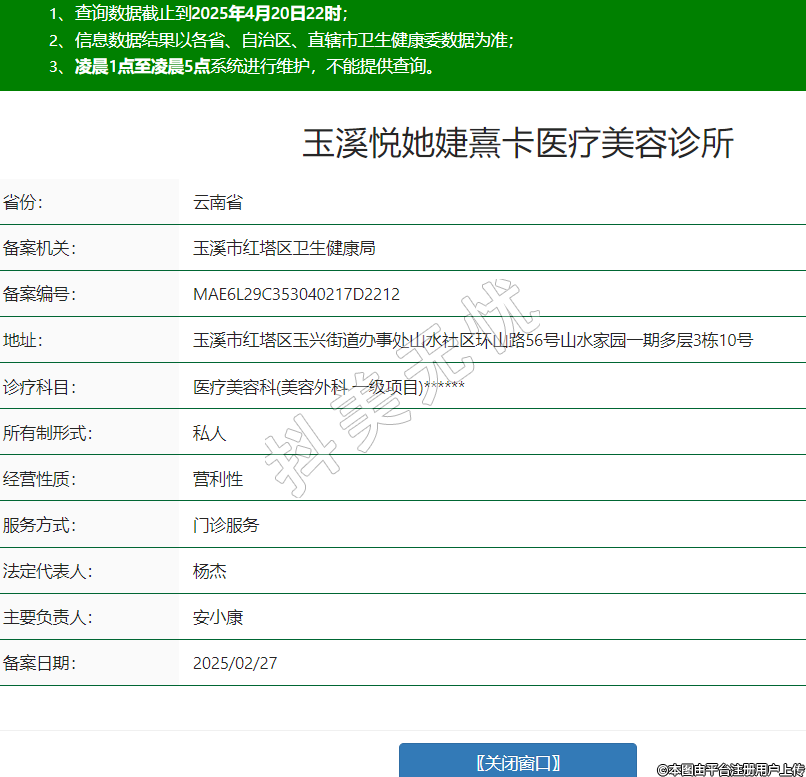 玉溪悅她婕熹卡醫(yī)療美容,診療科目:醫(yī)療美容科(美容外科 一級項(xiàng)目)******