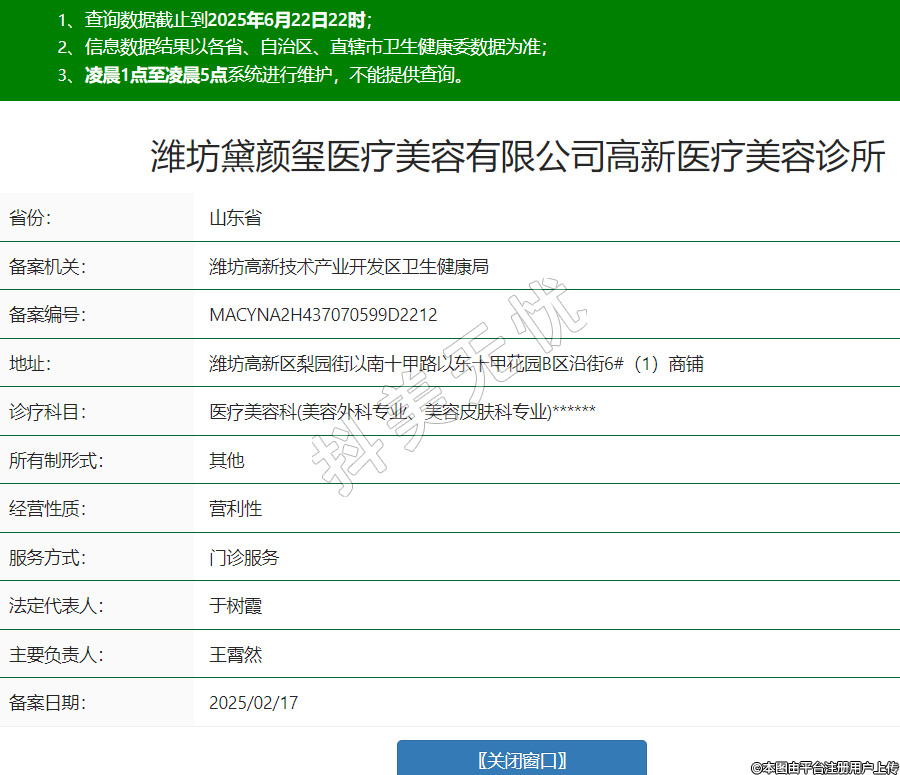 省份:山東省備案機(jī)關(guān):濰坊高新技術(shù)產(chǎn)業(yè)開發(fā)區(qū)衛(wèi)生健康局備案編號(hào):MACYNA2H437070599D2212地址:濰坊高新區(qū)梨園街以南十甲路以東十甲花園B區(qū)沿街6#(1)商鋪診療科目:醫(yī)療美容科(美容外科專業(yè)、美容皮膚科專業(yè))******所有制形式:其他經(jīng)營(yíng)性質(zhì):營(yíng)利性服務(wù)方式:門診服務(wù)法定代表人:于樹霞主要負(fù)責(zé)人:王霄然備案日期:2025/02/17 -
