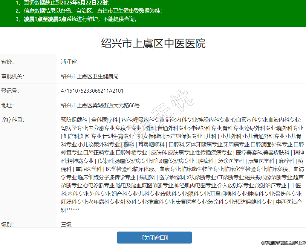 省份:浙江省審批機關(guān):紹興市上虞區(qū)衛(wèi)生健康局登記號:47151075233068211A2101地址:紹興市上虞區(qū)梁湖街道大元路66號診療科目:預(yù)防保健科 | 全科醫(yī)療科 | 內(nèi)科;呼吸內(nèi)科專業(yè);消化內(nèi)科專業(yè);神經(jīng)內(nèi)科專業(yè);心血管內(nèi)科專業(yè);血液內(nèi)科專業(yè);腎病學(xué)專業(yè);內(nèi)分泌專業(yè);免疫學(xué)專業(yè) | 外科;普通外科專業(yè);神經(jīng)外科專業(yè);骨科專業(yè);泌尿外科專業(yè);胸外科專業(yè) | 婦產(chǎn)科;婦科專業(yè);計劃生育專業(yè) | 婦女保健科;圍產(chǎn)期保健專業(yè) | 兒科 | 小兒外科;小兒普通外科專業(yè);小兒骨科專業(yè);小兒泌尿外科專業(yè) | 眼科 | 耳鼻咽喉科 | 口腔科;牙體牙髓病專業(yè);牙周病專業(yè);口腔頜面外科專業(yè);口腔修復(fù)專業(yè);口腔正畸專業(yè);口腔種植專業(yè) | 皮膚科;皮膚病專業(yè);性傳播疾病專業(yè) | 醫(yī)療美容科;美容皮膚科 | 精神科;精神病專業(yè) | 傳染科;腸道傳染病專業(yè);呼吸道傳染病專業(yè) | 腫瘤科 | 急診醫(yī)學(xué)科 | 康復(fù)醫(yī)學(xué)科 | 麻醉科 | 疼痛科 | 重癥醫(yī)學(xué)科 | 醫(yī)學(xué)檢驗科;臨床體液、血液專業(yè);臨床微生物學(xué)專業(yè);臨床化學(xué)檢驗專業(yè);臨床免疫、血清學(xué)專業(yè);臨床細(xì)胞分子遺傳學(xué)專業(yè) | 病理科 | 醫(yī)學(xué)影像科;X線診斷專業(yè);CT診斷專業(yè);磁共振成像診斷專業(yè);超聲診斷專業(yè);心電診斷專業(yè);腦電及腦血流圖診斷專業(yè);神經(jīng)肌肉電圖專業(yè);介入放射學(xué)專業(yè);放射治療專業(yè) | 中醫(yī)科;內(nèi)科專業(yè);外科專業(yè);婦產(chǎn)科專業(yè);兒科專業(yè);皮膚科專業(yè);眼科專業(yè);耳鼻咽喉科專業(yè);腫瘤科專業(yè);骨傷科專業(yè);肛腸科專業(yè);老年病科專業(yè);針灸科專業(yè);推拿科專業(yè);康復(fù)醫(yī)學(xué)專業(yè);急診科專業(yè);預(yù)防保健科專業(yè) | 中西醫(yī)結(jié)合科******級別:三級法定代表人:葉鋒主要負(fù)責(zé)人:董黎山執(zhí)業(yè)許可證有效期:2024/07/17 -至- 2036/06/30 -