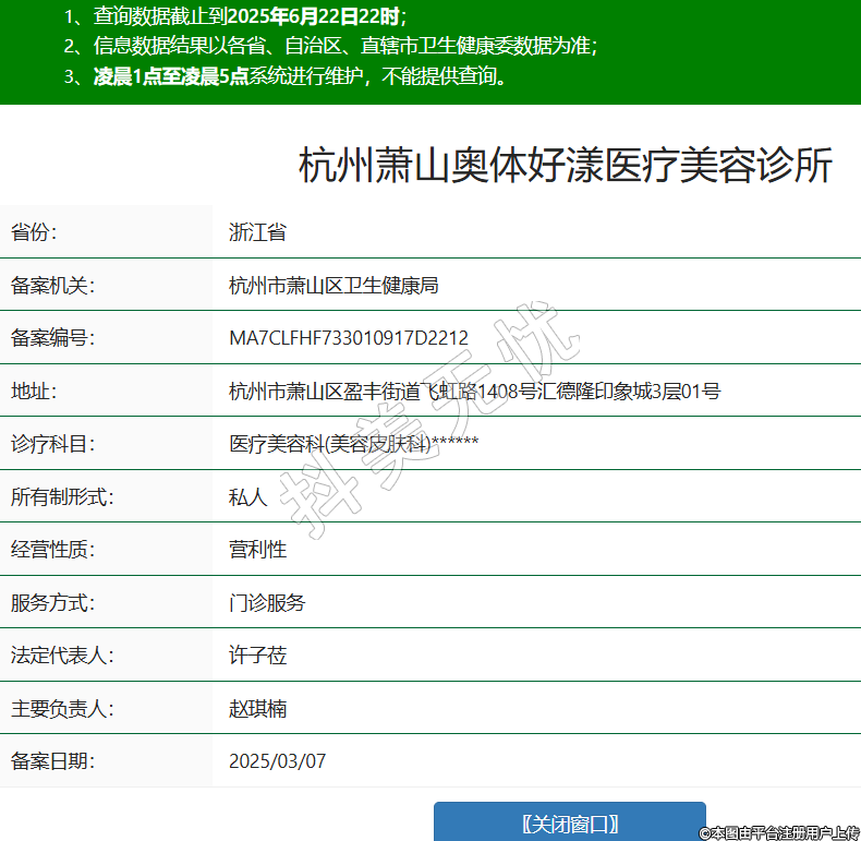 省份:浙江省備案機(jī)關(guān):杭州市蕭山區(qū)衛(wèi)生健康局備案編號:MA7CLFHF733010917D2212地址:杭州市蕭山區(qū)盈豐街道飛虹路1408號匯德隆印象城3層01號診療科目:醫(yī)療美容科(美容皮膚科)******所有制形式:私人經(jīng)營性質(zhì):營利性服務(wù)方式:門診服務(wù)法定代表人:許子蒞主要負(fù)責(zé)人:趙琪楠備案日期:2025/03/07 -