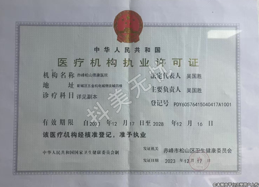 發(fā)證機關:赤峰市松山區(qū)衛(wèi)生健康委員會