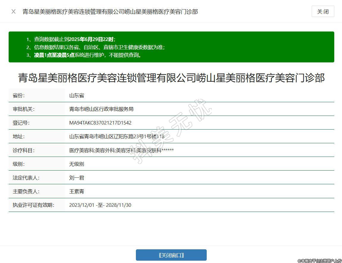 青島星美麗格醫(yī)療美容連鎖管理有限公司嶗山星美麗格醫(yī)療美容門診部