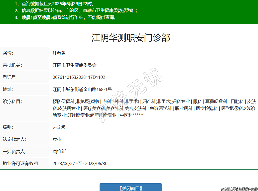 江陰華測職安門診部醫(yī)療美容