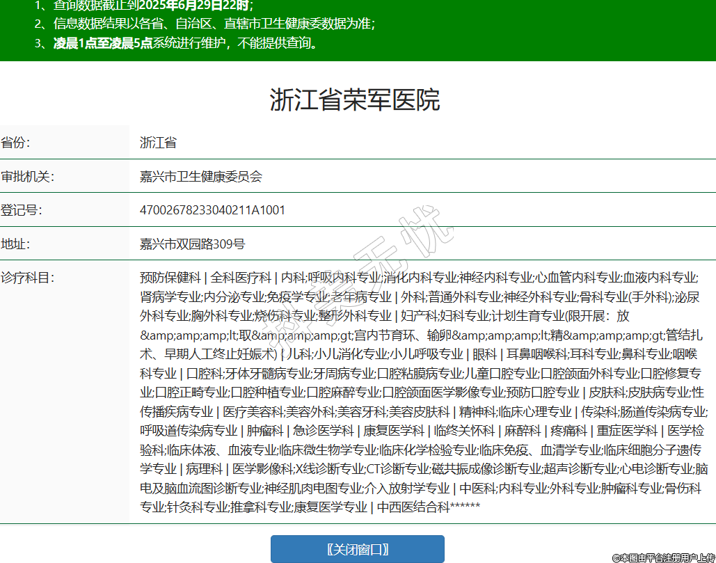 省份:浙江省審批機(jī)關(guān):嘉興市衛(wèi)生健康委員會登記號:47002678233040211A1001地址:嘉興市雙園路309號診療科目:預(yù)防保健科 | 全科醫(yī)療科 | 內(nèi)科;呼吸內(nèi)科專業(yè);消化內(nèi)科專業(yè);神經(jīng)內(nèi)科專業(yè);心血管內(nèi)科專業(yè);血液內(nèi)科專業(yè);腎病學(xué)專業(yè);內(nèi)分泌專業(yè);免疫學(xué)專業(yè);老年病專業(yè) | 外科;普通外科專業(yè);神經(jīng)外科專業(yè);骨科專業(yè)(手外科);泌尿外科專業(yè);胸外科專業(yè);燒傷科專業(yè);整形外科專業(yè) | 婦產(chǎn)科;婦科專業(yè);計劃生育專業(yè)(限開展:放<取>宮內(nèi)節(jié)育環(huán)、輸卵<精>管結(jié)扎術(shù)、早期人工終止妊娠術(shù)) | 兒科;小兒消化專業(yè);小兒呼吸專業(yè) | 眼科 | 耳鼻咽喉科;耳科專業(yè);鼻科專業(yè);咽喉科專業(yè) | 口腔科;牙體牙髓病專業(yè);牙周病專業(yè);口腔粘膜病專業(yè);兒童口腔專業(yè);口腔頜面外科專業(yè);口腔修復(fù)專業(yè);口腔正畸專業(yè);口腔種植專業(yè);口腔麻醉專業(yè);口腔頜面醫(yī)學(xué)影像專業(yè);預(yù)防口腔專業(yè) | 皮膚科;皮膚病專業(yè);性傳播疾病專業(yè) | 醫(yī)療美容科;美容外科;美容牙科;美容皮膚科 | 精神科;臨床心理專業(yè) | 傳染科;腸道傳染病專業(yè);呼吸道傳染病專業(yè) | 腫瘤科 | 急診醫(yī)學(xué)科 | 康復(fù)醫(yī)學(xué)科 | 臨終關(guān)懷科 | 麻醉科 | 疼痛科 | 重癥醫(yī)學(xué)科 | 醫(yī)學(xué)檢驗科;臨床體液、血液專業(yè);臨床微生物學(xué)專業(yè);臨床化學(xué)檢驗專業(yè);臨床免疫、血清學(xué)專業(yè);臨床細(xì)胞分子遺傳學(xué)專業(yè) | 病理科 | 醫(yī)學(xué)影像科;X線診斷專業(yè);CT診斷專業(yè);磁共振成像診斷專業(yè);超聲診斷專業(yè);心電診斷專業(yè);腦電及腦血流圖診斷專業(yè);神經(jīng)肌肉電圖專業(yè);介入放射學(xué)專業(yè) | 中醫(yī)科;內(nèi)科專業(yè);外科專業(yè);腫瘤科專業(yè);骨傷科專業(yè);針灸科專業(yè);推拿科專業(yè);康復(fù)醫(yī)學(xué)專業(yè) | 中西醫(yī)結(jié)合科******級別:三級法定代表人:褚聞來主要負(fù)責(zé)人:褚聞來執(zhí)業(yè)許可證有效期:2024/01/17 -至- 2036/07/31 -