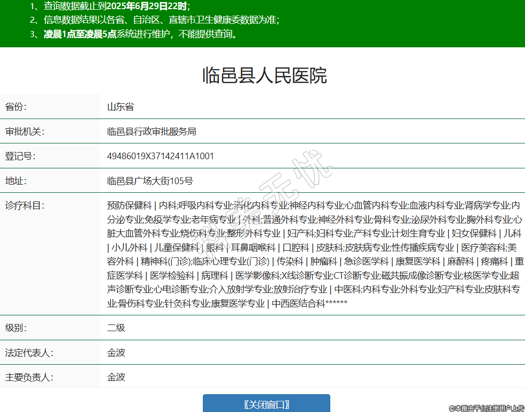 省份:山東省審批機(jī)關(guān):臨邑縣行政審批服務(wù)局登記號(hào):49486019X37142411A1001地址:臨邑縣廣場(chǎng)大街105號(hào)診療科目:預(yù)防保健科 | 內(nèi)科;呼吸內(nèi)科專業(yè);消化內(nèi)科專業(yè);神經(jīng)內(nèi)科專業(yè);心血管內(nèi)科專業(yè);血液內(nèi)科專業(yè);腎病學(xué)專業(yè);內(nèi)分泌專業(yè);免疫學(xué)專業(yè);老年病專業(yè) | 外科;普通外科專業(yè);神經(jīng)外科專業(yè);骨科專業(yè);泌尿外科專業(yè);胸外科專業(yè);心臟大血管外科專業(yè);燒傷科專業(yè);整形外科專業(yè) | 婦產(chǎn)科;婦科專業(yè);產(chǎn)科專業(yè);計(jì)劃生育專業(yè) | 婦女保健科 | 兒科 | 小兒外科 | 兒童保健科 | 眼科 | 耳鼻咽喉科 | 口腔科 | 皮膚科;皮膚病專業(yè);性傳播疾病專業(yè) | 醫(yī)療美容科;美容外科 | 精神科(門診);臨床心理專業(yè)(門診) | 傳染科 | 腫瘤科 | 急診醫(yī)學(xué)科 | 康復(fù)醫(yī)學(xué)科 | 麻醉科 | 疼痛科 | 重癥醫(yī)學(xué)科 | 醫(yī)學(xué)檢驗(yàn)科 | 病理科 | 醫(yī)學(xué)影像科;X線診斷專業(yè);CT診斷專業(yè);磁共振成像診斷專業(yè);核醫(yī)學(xué)專業(yè);超聲診斷專業(yè);心電診斷專業(yè);介入放射學(xué)專業(yè);放射治療專業(yè) | 中醫(yī)科;內(nèi)科專業(yè);外科專業(yè);婦產(chǎn)科專業(yè);皮膚科專業(yè);骨傷科專業(yè);針灸科專業(yè);康復(fù)醫(yī)學(xué)專業(yè) | 中西醫(yī)結(jié)合科******級(jí)別:二級(jí)法定代表人:金波主要負(fù)責(zé)人:金波執(zhí)業(yè)許可證有效期:2025/05/26 -至- 2037/01/25 -