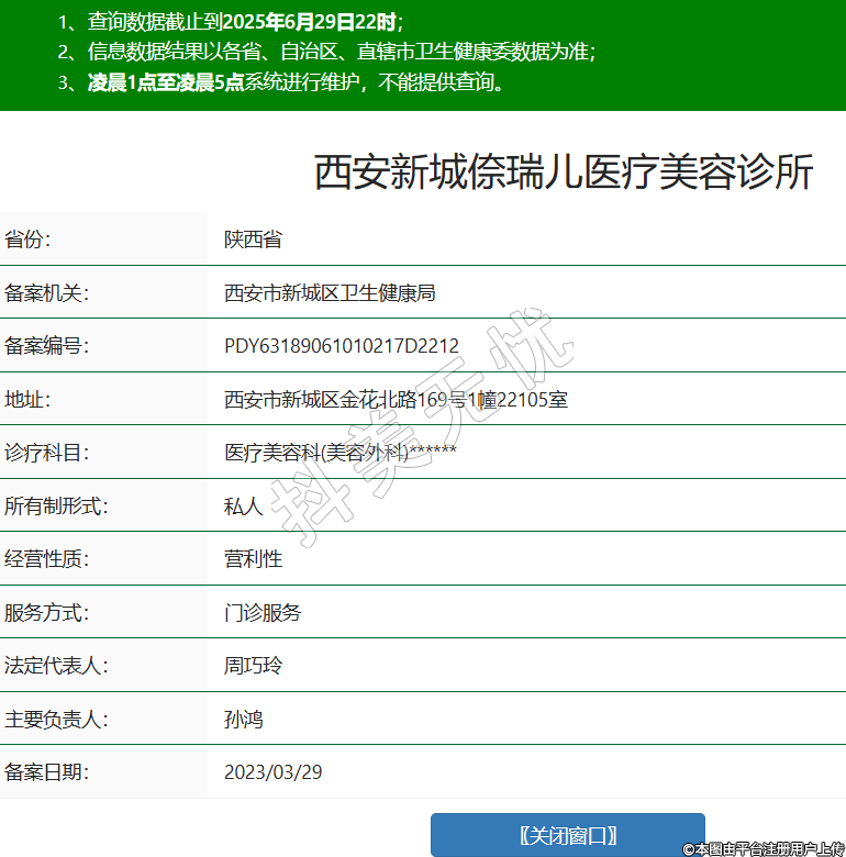 省份:陜西省備案機關(guān):西安市新城區(qū)衛(wèi)生健康局備案編號:PDY63189061010217D2212地址:西安市新城區(qū)金花北路169號1幢22105室診療科目:醫(yī)療美容科(美容外科)******所有制形式:私人經(jīng)營性質(zhì):營利性服務(wù)方式:門診服務(wù)法定代表人:周巧玲主要負責人:孫鴻備案日期:2023/03/29 -