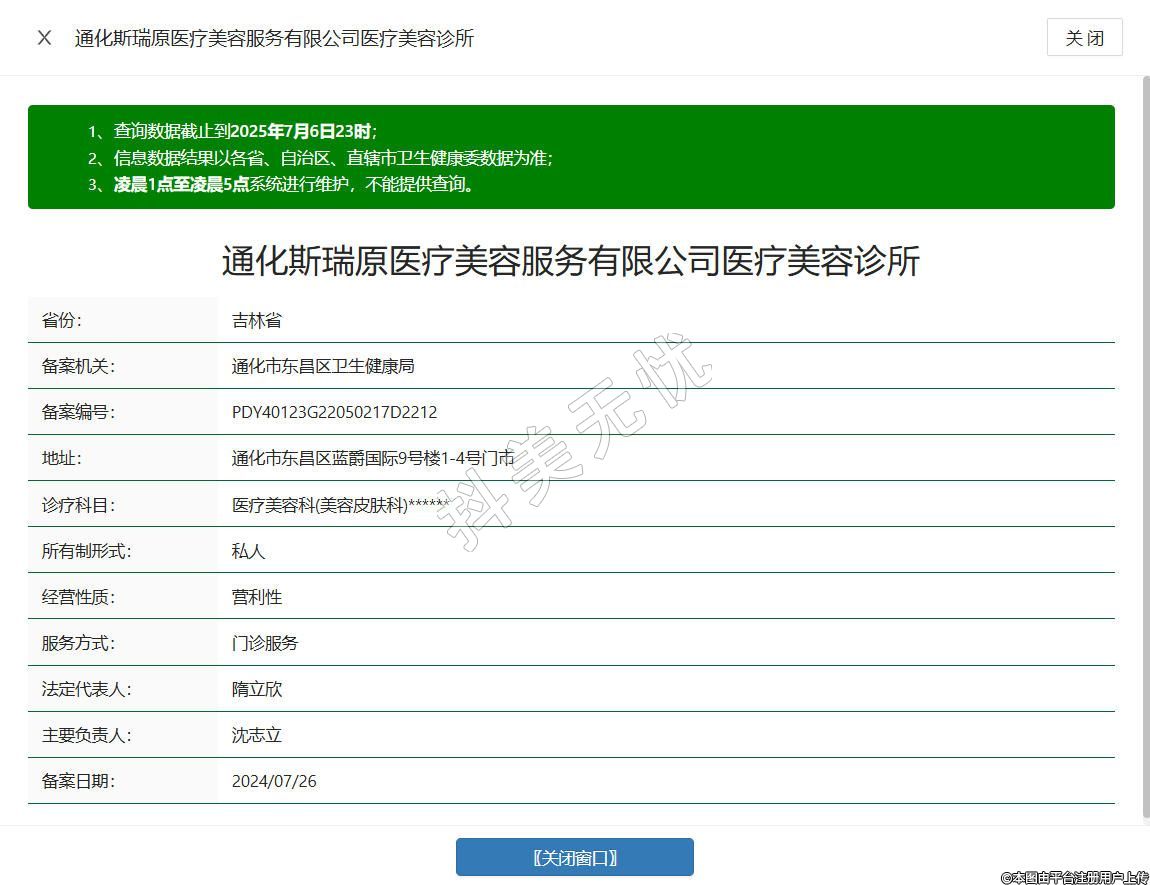 通化斯瑞原醫(yī)療美容服務(wù)有限公司醫(yī)療美容診所