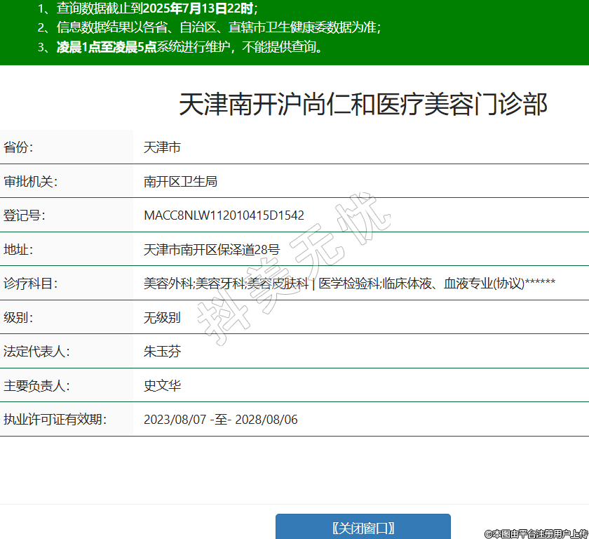 天津南開滬尚仁和醫(yī)療美容門診部,診療科目:美容外科;美容牙科;美容皮膚科 | 醫(yī)學檢驗科;臨床體液、血液專業(yè)(協(xié)議)******