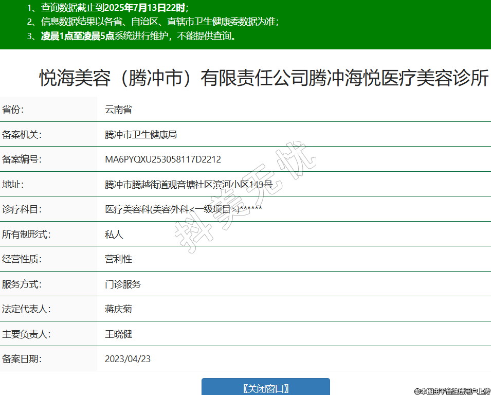 悅海美容(騰沖市)有限責(zé)任公司騰沖海悅醫(yī)療美容診所