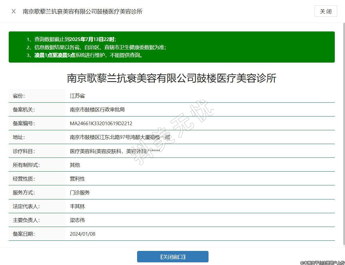 南京歌藜蘭抗衰美容有限公司鼓樓醫(yī)療美容診所