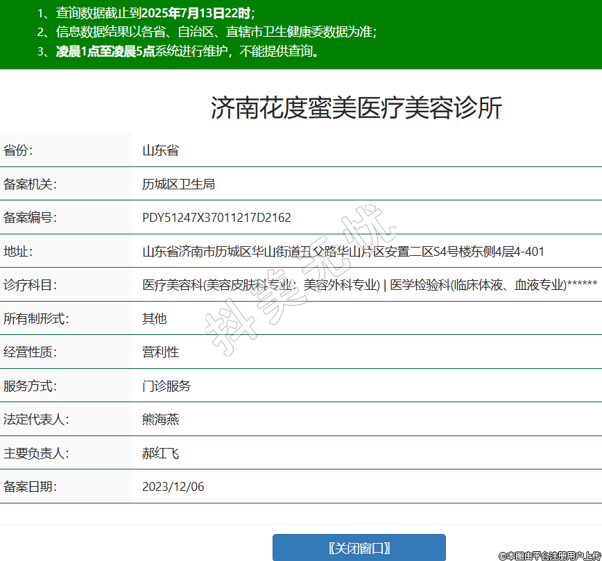 省份:山東省備案機關(guān):歷城區(qū)衛(wèi)生局備案編號:PDY51247X37011217D2162地址:山東省濟南市歷城區(qū)華山街道丑父路華山片區(qū)安置二區(qū)S4號樓東側(cè)4層4-401診療科目:醫(yī)療美容科(美容皮膚科專業(yè):美容外科專業(yè)) | 醫(yī)學(xué)檢驗科(臨床體液、血液專業(yè))******所有制形式:其他經(jīng)營性質(zhì):營利性服務(wù)方式:門診服務(wù)法定代表人:熊海燕主要負責(zé)人:郝紅飛備案日期:2023/12/06 -