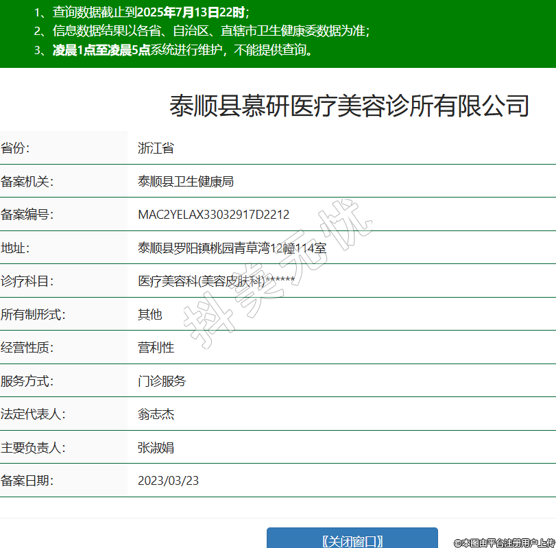 泰順縣慕研醫(yī)療美容診所有限公司