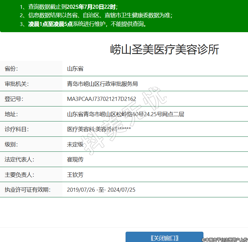 嶗山圣美醫(yī)療美容診所,診療科目:醫(yī)療美容科;美容外科******