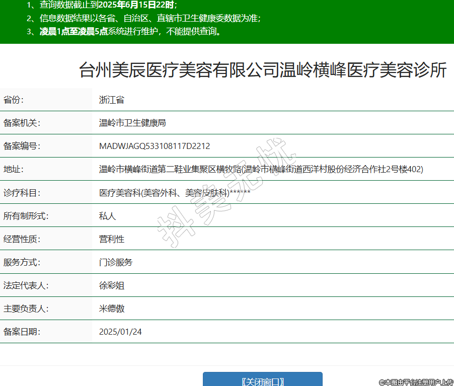 臺(tái)州美辰醫(yī)療美容有限公司溫嶺橫峰醫(yī)療美容診所
