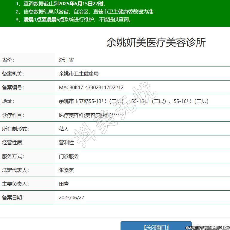 省份:浙江省備案機關(guān):余姚市衛(wèi)生健康局備案編號:MAC80K17-433028117D2212地址:余姚市玉立路55-13號(二層)、55-15號(二層)、55-16號(二層)診療科目:醫(yī)療美容科(美容皮膚科)******所有制形式:私人經(jīng)營性質(zhì):營利性服務(wù)方式:門診服務(wù)法定代表人:張素英主要負(fù)責(zé)人:田青備案日期:2023/06/27 -