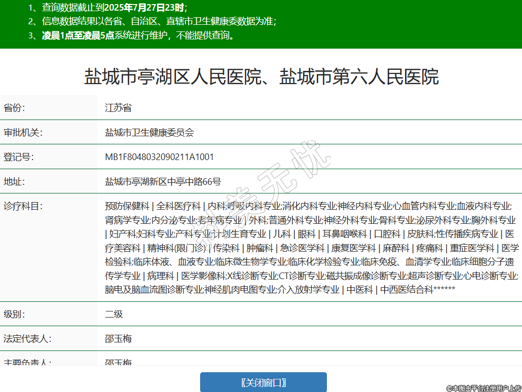 鹽城市亭湖區(qū)人民醫(yī)院、鹽城市第六人民醫(yī)院醫(yī)療美容