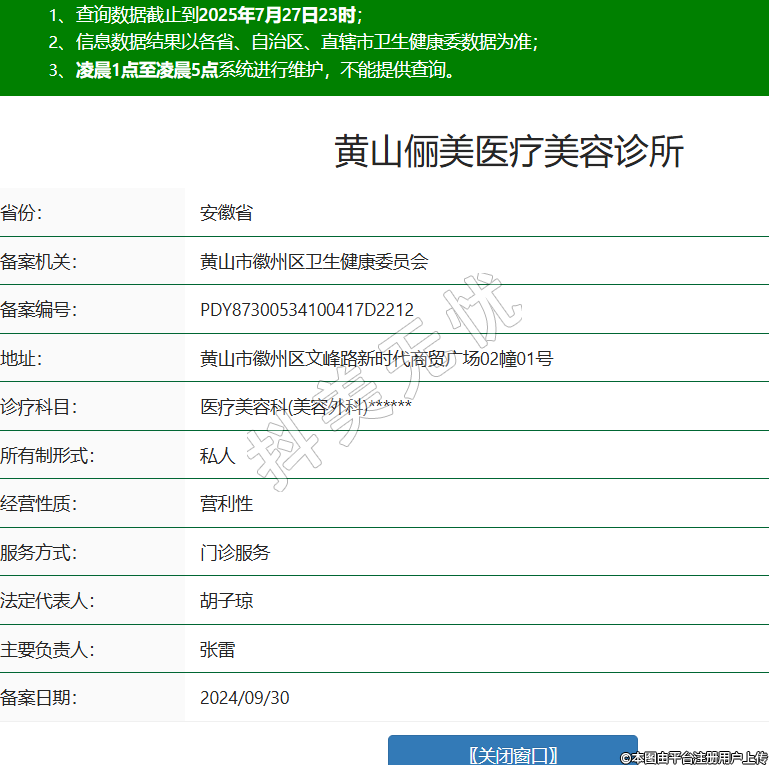 省份:安徽省備案機(jī)關(guān):黃山市徽州區(qū)衛(wèi)生健康委員會(huì)備案編號(hào):PDY87300534100417D2212地址:黃山市徽州區(qū)文峰路新時(shí)代商貿(mào)廣場(chǎng)02幢01號(hào)診療科目:醫(yī)療美容科(美容外科)******所有制形式:私人經(jīng)營(yíng)性質(zhì):營(yíng)利性服務(wù)方式:門診服務(wù)法定代表人:胡子瓊主要負(fù)責(zé)人:張雷備案日期:2024/09/30 -