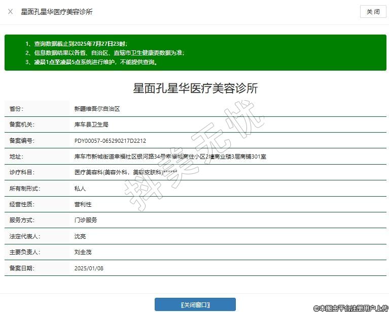 阿克蘇星華醫(yī)療美容門診部于2023年設(shè)立,位于新疆阿克蘇地區(qū)庫車市新城街道幸福社區(qū)銀河路34號幸福城商住小區(qū)2幢商業(yè)樓3層商鋪301室。門診部致力于提供規(guī)范的醫(yī)療美容服務(wù),滿足顧客對整體美感的綜合需求。