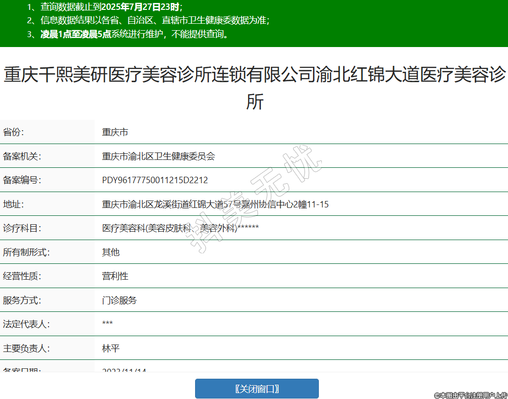 重慶千熙美研醫(yī)療美容診所連鎖有限公司渝北紅錦大道醫(yī)療美容診所