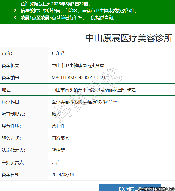 省份:廣東省備案機關(guān):中山市衛(wèi)生健康局南頭分局備案編號:MACLLKBM744200017D2212地址:中山市南頭鎮(zhèn)升平南路23號翡麗花園52卡之二診療科目:醫(yī)療美容科(僅限美容皮膚科)******所有制形式:私人經(jīng)營性質(zhì):營利性服務(wù)方式:門診服務(wù)法定代表人:熊建慧主要負責(zé)人:金廣備案日期:2024/08/14 -