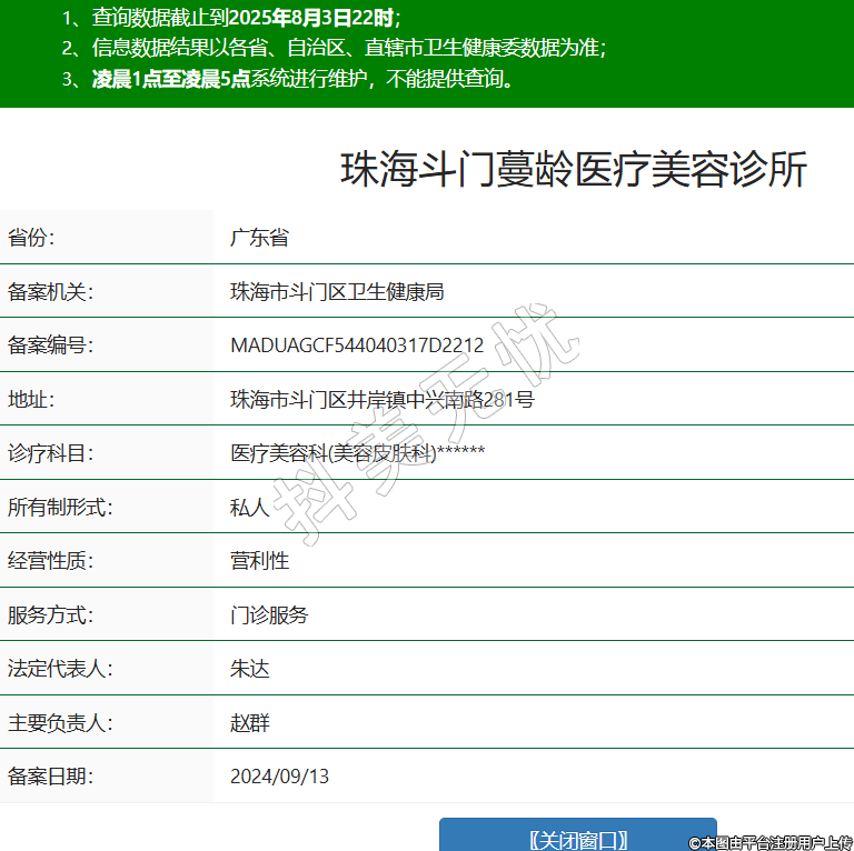 珠海斗門(mén)蔓齡醫(yī)療美容診所,診療科目:醫(yī)療美容科(美容皮膚科)******