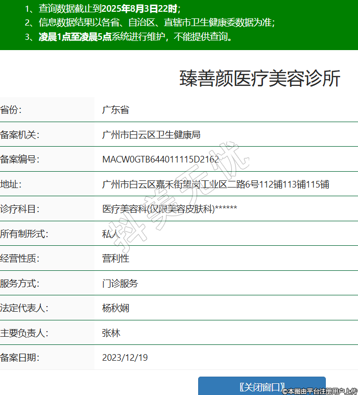 省份:廣東省備案機(jī)關(guān):廣州市白云區(qū)衛(wèi)生健康局備案編號(hào):MACW0GTB644011115D2162地址:廣州市白云區(qū)嘉禾街望崗工業(yè)區(qū)二路6號(hào)112鋪113鋪115鋪診療科目:醫(yī)療美容科(僅限美容皮膚科)******所有制形式:私人經(jīng)營性質(zhì):營利性服務(wù)方式:門診服務(wù)法定代表人:楊秋嫻主要負(fù)責(zé)人:張林備案日期:2023/12/19 -