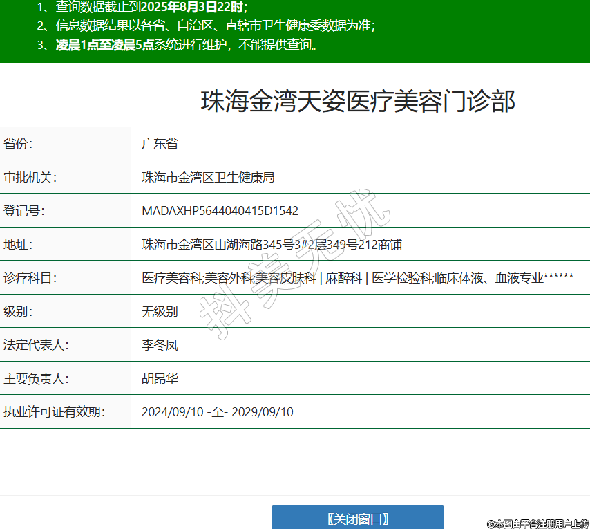 省份:廣東省審批機關(guān):珠海市金灣區(qū)衛(wèi)生健康局登記號:MADAXHP5644040415D1542地址:珠海市金灣區(qū)山湖海路345號3#2層349號212商鋪診療科目:醫(yī)療美容科;美容外科;美容皮膚科 | 麻醉科 | 醫(yī)學(xué)檢驗科;臨床體液、血液專業(yè)******級別:無級別法定代表人:李冬鳳主要負責(zé)人:胡昂華執(zhí)業(yè)許可證有效期:2024/09/10 -至- 2029/09/10 -